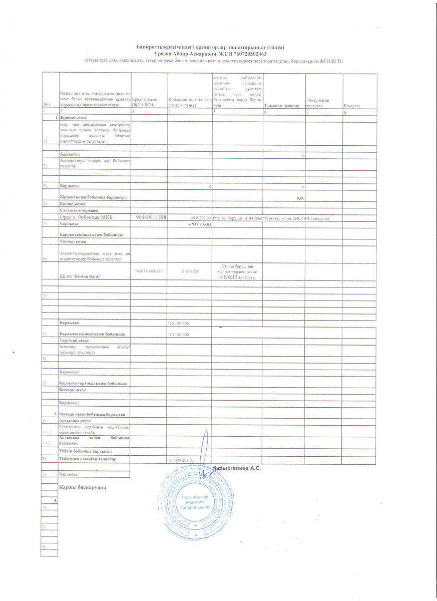 | 57 | Имангалиев Нурлан Газизович | 630123399029 | 09.07.2025 |